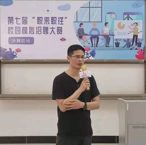 梁伟滔作大赛致辞,他表示,此次模拟招聘大赛是一次生动的就业指导教育,通过模拟用人单位招聘场景,为在校大学生提供一个接触社会、直面求职、身临职场的机会,对营造良好的校园就业氛围、增强学生就业意识、提高学生就业技能起到积极的推动作用。