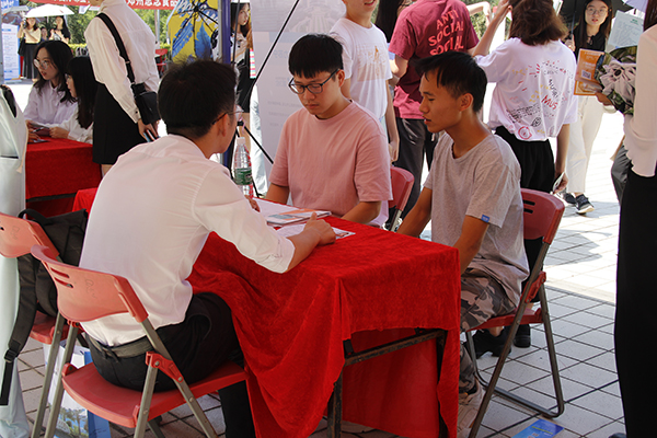 本网讯(记者李雯靖郑海默)10月17日,由我校学生就业指导中心主办,管理学院、经济学院协办的经管专场招聘会在学生活动中心广场顺利举办,此次招聘会旨在促进2020届毕业生的实习就业,搭建应届毕业生与用人单位双向选择的平台。招聘会共有55家企事业单位到场招聘,涵盖了金融、管理、地产、教育、物流等行业领域,为毕业生们提供了200余个就业岗位。