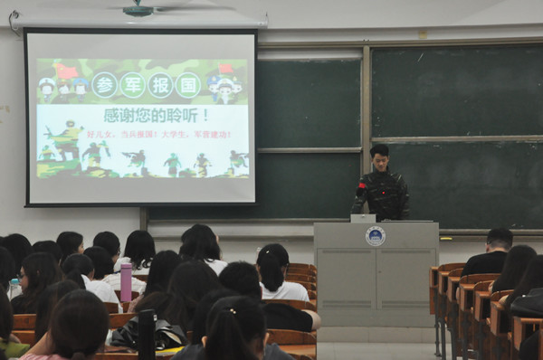 响应国家号召,应征入伍是一件光荣且有担当、有责任的事,也是磨砺人生实现理想抱负的重要途经,更是一种高尚的爱国行为。听完这些退役大学生士兵所讲解的入伍相关政策和自己的故事后,同学们对入伍相关规定了解的更加清楚,对未来的道路有了更清晰的认识。