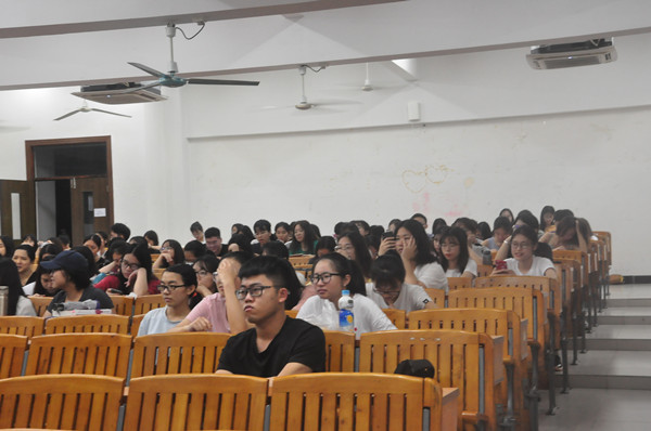 退伍士兵向同学们分享部队中的生活(易晓晴摄)