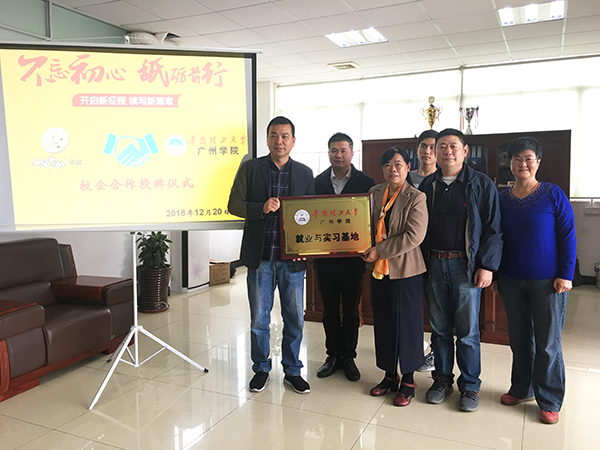 本网讯(记者梁有增)为促进校企双方合作交流,拓宽我院毕业生实习就业渠道,进一步探索校企联合培养应用型、创新型人才新途径,12月20日上午,我院副院长苏来英、电子商务系主任陈志轩、学院行政办公室主任罗羚一行赴花都广州市汇沣园食品有限公司进行就业与实习基地签约挂牌仪式,并就校企合作期间专业培训、课题研究、学生实习与就业等相关事宜交换了意见。