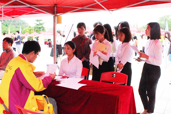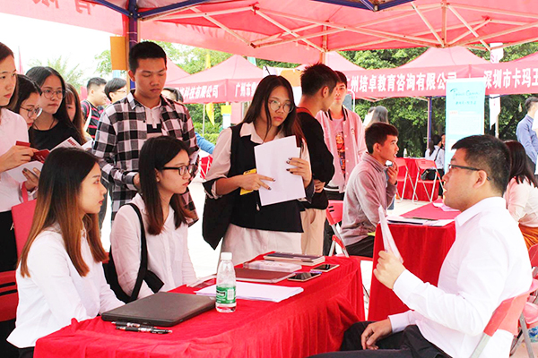 招聘会现场,各参会企业一改平日严肃严谨的形象,热情地为毕业生介绍企业文化、岗位类别、人才需求及薪资福利等,吸引了很多同学前往了解。而在这些招聘人员中,还有一批特殊的人,他们便是华广的历届校友,他们从华广学生变身为面试官,再次回归校园,为新的毕业生提供工作岗位,以师兄师姐的身份与应聘者交流,活跃气氛,使得面试中的“职场新人”们原有的紧张感慢慢退却,在交谈中,他们真诚地邀请毕业生们一起相互促进、共谋发展。整个招聘会现场,气氛和谐欢快。