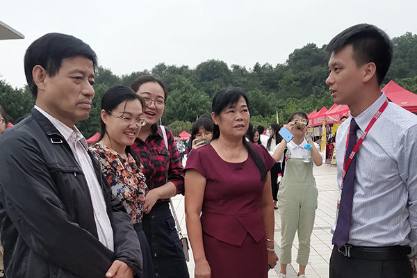 为增进学校、学院和企业双方的了解、促进校企精准合作,我校党委书记张培祥,学生处处长张郡,管理学院院长刘志超、副院长苏来英,经济学院副院长蒋金良,学生就业指导中心主任岑有文等亲临招聘会现场会见企业代表,一方面,对参会企业表示热烈的欢迎;另一方面,与企业代表就招聘人才需求进行深刻交谈,深切关注毕业生们的应聘情况。