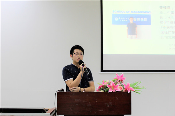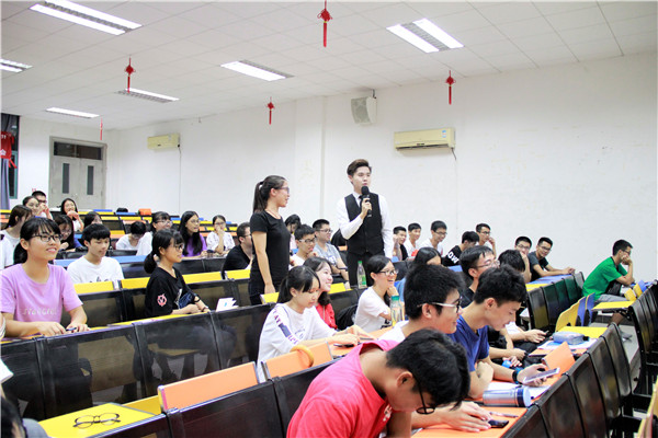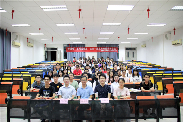 本网讯(记者黄博鑫)为引导新生更好地适应大学生活,帮助他们更快地找到学习目标和动力,由管理学院主办、学生就业创业促进会协办的“开讲啦”新生系列活动之“选择——遇见未来优秀的自己”讲座于9月25日在A8-101举行,本次讲座的分享嘉宾为2018届毕业生曾梓兵、冯凌雁。