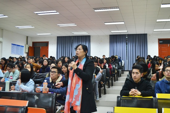 随后,苏院长向大家系统介绍了2018届毕业生的就业工作安排。她认为,大四可以分为分化期、收获期、转折期及人生的转折四个时期,而且有三大作用和两大任务,不能松懈。此外,她也希望同学们能够加强就业意识,锁定自己的目标行业,合理定位并做好就业的心理准备和技能准备。