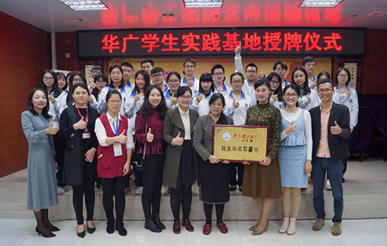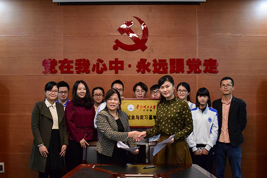 本网讯(记者李泳 陆楚慧周丽婷) 11月29日下午,管理学院一行前往新华街家庭综合服务中心,与其举行华南理工大学广州学院就业与实习基地签约暨授牌仪式。新华街家庭综合服务中心主任黄清华,我院党支总书记、副院长苏来英,学生工作办公室副主任祁健等人出席本次授牌仪式。