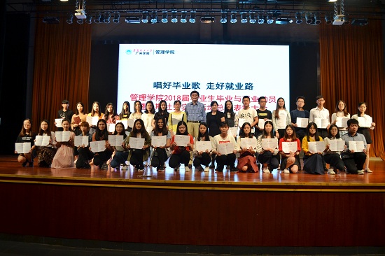 随后,黄院长作题为“唱好毕业歌,走好就业路”2018届毕业生毕业就业教育主题报告。黄院长指出大四阶段的两大目标,即毕业与就业,并指出管理与执行力是当今应对挑战的两大关键因素,这也符合管院“一流、二创、三化”的教育理念;他还倡导“真心、激情、务实、创新”的就业心得,为即将走出校门的毕业生们提出宝贵的建议。