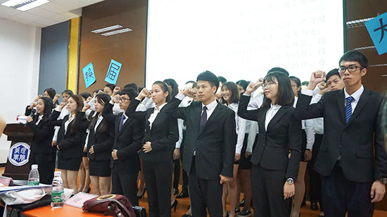 组织宣传视频生动地向在场观众介绍了各部门的工作内容,展现了新干事的精神面貌。最后,第三届第一任委员会的全体委员在常委梁艳婷的带领下宣誓就职,并由指导老师颁发任命书。