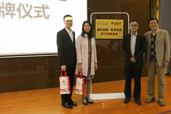 本网讯(记者郑娟) 3月28日晚,我校与建设银行广州花都支行联合共建的“高校金融,筑梦远航”实习实践基地揭牌仪式在A9-101举行。中国建设银行股份有限公司广东省分行个人金融部副经理王磊先生、花都支行副行长林少丽女士,我校副校长李华钢、管理学院院长黄培伦、副院长苏来英、李旭穗及师生代表参加了本次揭牌仪式。