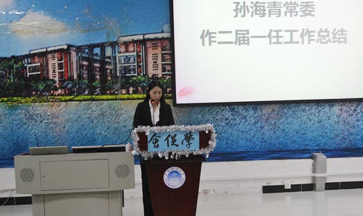 孙海青常委作第二届第一任工作总结,她提到学生就业创业促进会以学生就业创业服务为核心,通过举办各式各样的就业创业活动,为管院学生在以后的就业创业道路打下坚实的基础。在过去的一年里,学生就业创业促进会举办了多场讲座,多次邀请已经毕业的校友回校与我们进行交流,更在“校园职来职往”中为多位毕业班学生取得实习的机会。同时也希望学促会的每位成员都能再接再厉,为创建学生就业创业促进会向“规范化,制度化,专业化”靠拢的学习组织而不懈奋斗。孙海青衷心期待学生就业创业促进会在以后的阶段:追忆似水华年,开创美好的未来,抒写辉煌的篇章,也由衷的感谢老师悉心的指导。