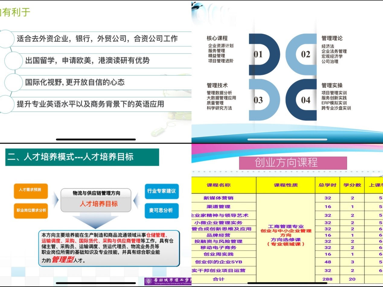 工商管理专业分为四个方向,分别是:国际企业管理、创业与中小企业管理、运营与项目管理、物流与供应链管理。宣讲会由系副主任彭玉莲老师主持,共270名学生参会。系主任魏卫老师介绍会议议程、解读工商管理专业的现状及发展特色,她介绍到:“该专业是我校首批创办的老牌专业,是广东省质量工程特色专业,学校综合改革试点专业,也是国内首批获得美国IACBE国际商科认证的专业。”方向负责人蒋盈莹、李菁、郑苏峰、李军霞四位老师分别介绍了四个方向的特色、核心课程和就业前景。会议最后,彭玉莲老师提出本次分方向宣讲会的选报方式及要求,并解答了同学们关心的问题。