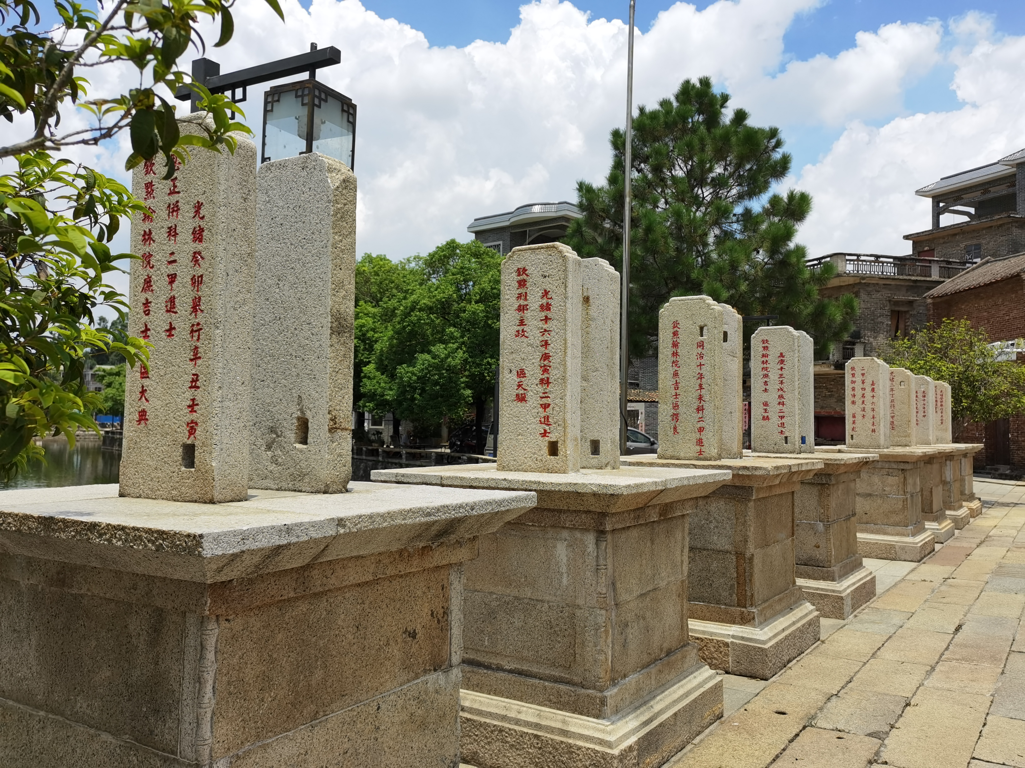 村民们在翰林门旁的榕树下,或聊天,或下棋,或乘凉,过着向往的村居生活,这纯朴祥和的画面让队员最受感触。走访村子,队员们发现村内还保存了大量明清古建筑,最为著名的是区氏宗祠和孔圣庙。祠堂门前有一列排序整齐的石碑,据村内老党员介绍,上面刻有祖先的科考成就,是祖祖辈辈世代流传的骄傲,是本村翰林文化得以传承的标志。