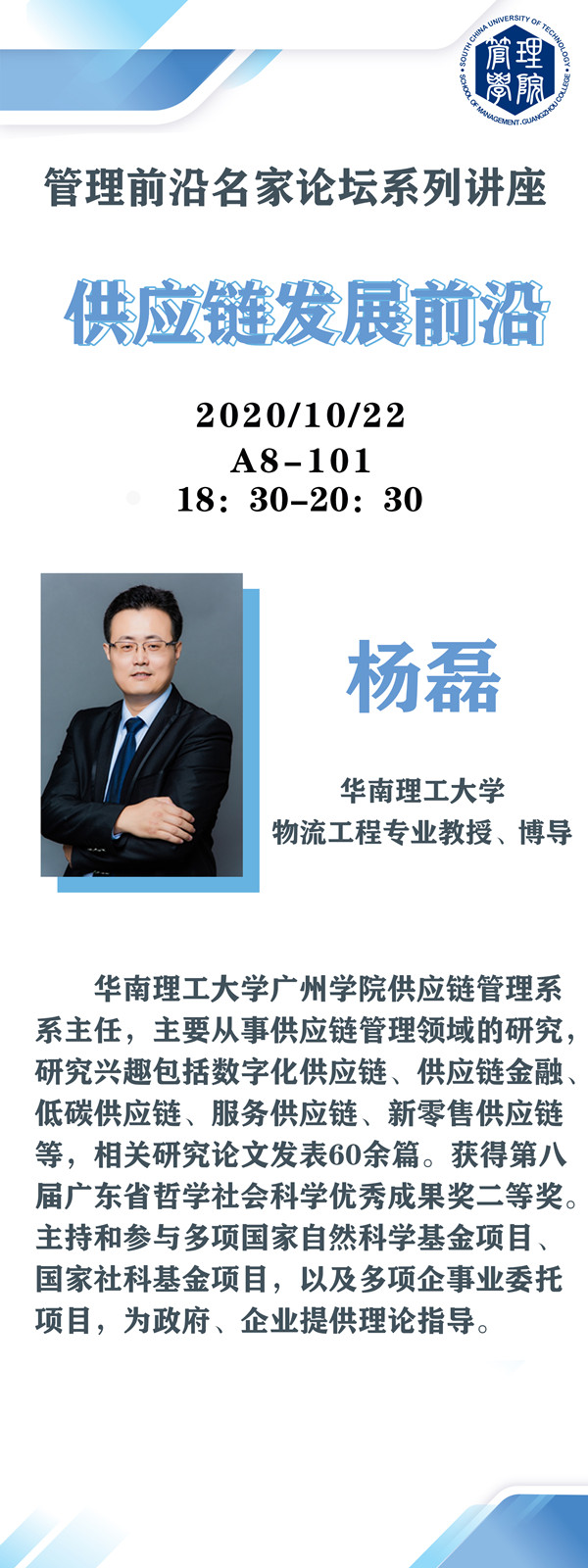 管理前沿名家论坛系列讲座预告——供应链发展前沿(10月22日晚)