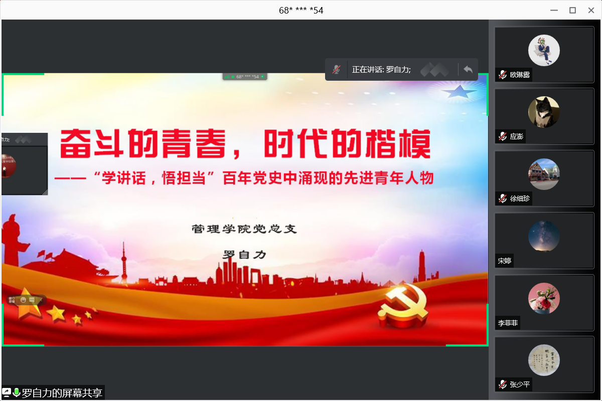 本网讯(记者 凌玉珍 应澎)根据学校党委统一部署,为深入学习习近平总书记“七一”重要讲话精神,提高党员政治站位,深化思想认识,增强行动自觉,8月16日下午,我校管理学院党总支通过线上会议和直播的形式开展党史学习教育专题党课。管理学院全体师生党员、积极分子共650余人参加了本次党课。此次党课由管理学院党总支书记罗自力担任主讲人。