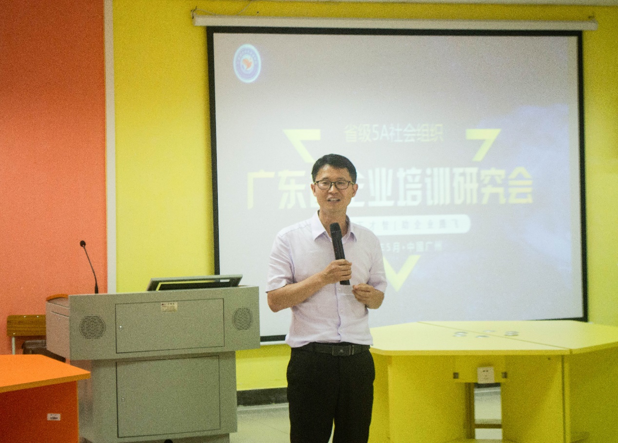 赵洪波首先对企业培训研究会进行介绍,他表示,作为广东省5A级社会组织,企培研究会致力于制定行业标准、培养行业人才、知识创新与服务等业务,同时他提出“成绩虽是虚名,磨练却是收获。”参加比赛对于优化教学管理、提升教学质量以及完善课程设计具有积极作用。