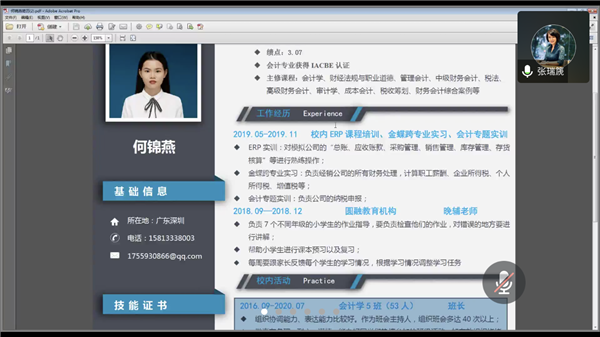 本网讯(记者陈晓婷)截至目前,管理学院就业能力提升训练营活动已成功举办两期,并获得一众毕业年级学生的正面反响。6月5日晚,管理学院第三期线上就业能力提升训练营活动,于腾讯会议平台助力学生就业指导工作,为管院学子就业工作提供强有力的支持。出席本次会议的有特邀指导导师顾蔚坤、张瑞篪。会议由何锦燕主持。