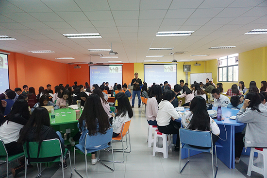 本网讯(记者邓美华)2014级跨专业综合仿真实习正式拉开序幕,为了让我院大四的学生快速适应职场,11月16日下午,《如何快速成为职场精英》讲座在A9-201举行。才聚文化集团总裁、广州聚星旅游发展有限公司总经理熊金红走进课堂,与同学们分享他的职场心得。