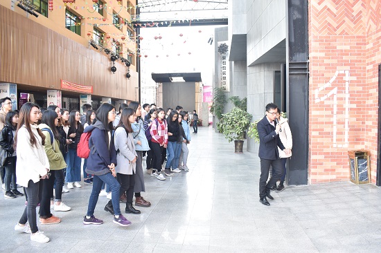 首先,才聚文化集团综合事业部总监黄海飞先生对我校的来访表示热烈的欢迎及介绍了该公司的招聘渠道,并带领同学们参观了才聚文化集团的皮包展馆,为同学们介绍了各式各样的皮包及其发展历程,让同学们一睹皮革皮具独特的风采。