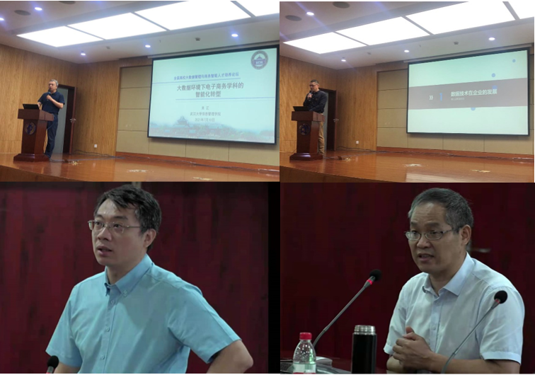 围绕“数字经济时代,如何培养具有良好数据科学和信息管理理论素养,具备数据分析能力和应用技能的复合型人才,推动产教融合”的主题,来自武汉大学、西安交通大学、加拿大约克大学舒立克商学院、电子科技大学、北京理工大学、武汉纺织大学、广州城市理工学院等7所高校和5家新技术行业知名企业的16位高校管理者、专家学者和企业高管做主题报告。大会同时开放了线上参会模式。
