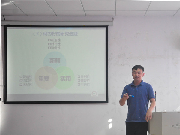 随后,为了提升教师们管理学术研究的水平,李云健分享了他对如何做好管理学术研究的一些看法。他说道,“一篇好的学术研究,首先要做好研究选题或论文选题,一个好的题目,能让别人很清晰地明白你的研究项目。他提到,一篇好的学术研究在做好研究选题或论文选题的前提下,还要注意文献述评、研究问题与研究内容等多方面问题。因此,做好学术研究,不仅要注意规范性,更要创新。”
