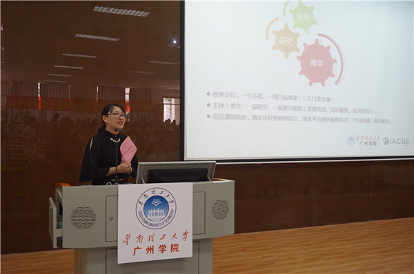 会中,刘飞燕对管理学院教学情况进行介绍。“管理学院依托华南理工大学本部教育理念和资源,由六个系组成,六个专业均通过IACBE国际认证。我院的使命是培养‘一流二好三有’人才,教学策略为‘规范化、实训化、国际化、平台化’,以‘培养好的学生,造就好的老师’为办学宗旨,注重新商科理论与实践相结合,致力培养具有国际视野和“互联网+”思维的应用型与创新型管理人才。”社会环境在不断发生变化,刘飞燕对商科培训的改进提出自己的思考:对教学质量、结构模式及理念体系三方面进行创新,在商科领域运用大数据技术作分析。同时,要做到不同学科间相互融合,不同专业之间相互协作。