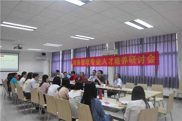 在财务管理专业人才培养研讨会上中,财务管理系主任屈振甫指出目前财务管理专业存在的问题,鼓励各专家教授踊跃发言。原华南理工大学工商管理学院崔毅教授认为财务管理专业具有竞争力,她根据自己的工作经验详细地指出财管与会计、投资的区别与融合。对于学校的发展,崔教授表示应当争取更多的资源,因为“打铁还需自身硬”,她给出的建议是:学校可以拿出科研经费成立研究所,第一步进行技术创新;华南理工大学工商管理学院杨建辉教授表示“课程体系仍需改进,课程应该适当精简,培养人才目标要明确”;中国商协会合作联盟执行主任李文斌则表示“专业实训时间要加强,多注重实践能力”。