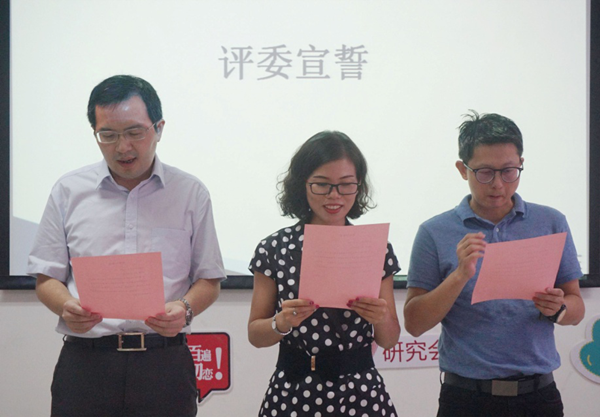 “文明评审,客观公正,不徇私情,一视同仁,尽心尽力,尽职尽责,以良好的道德风尚和专业精神,确保大赛的结果公平公正。”本着公平公正公开的原则,三位评委老师在比赛一开始进行了庄严的宣誓仪式。