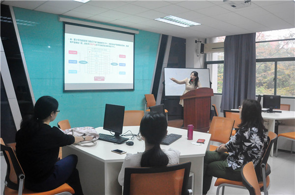 与此同时,几位会计系老师在A9-103进行着管理会计P1+P2的工作交流会。黎静老师通过PPT展示向大家分析了CMA与国内教学内容的差异。曾海花老师则发现培训机构的P1+P2课程教学定位与高校老师的教学定位有所不同,培训机构更具考纲针对性,高校教师授课则会更注重给学生知识性的延伸。