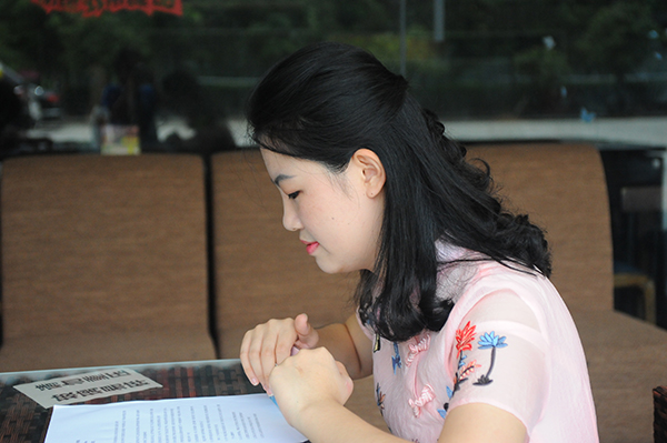 “想通过工作改变一下自己内向的性格”,说起连续两年获得“优秀志愿者”称号的经历,马海丹不由笑道。在进入招生宣传志愿者电话组后,她每天负责接听考生及家长的来电,帮助他们解疑答惑。第一年的志愿者工作牵扯荡漾着她的心,在第二年,她把大部分的时间都花了在志愿者工作上,这一年里,她的志愿时数高达八十小时。大二寒假期间,她参加了寒假回访母校活动,为母校的师弟师妹们传授高考备考经验,跟他们分享关于大学生活的喜闻乐见。志愿者的工作让她感到快乐充实之余,也锻炼了她的胆量,她开始敢于表达、乐于表达。