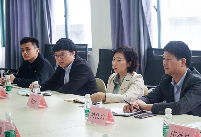 本网讯(记者 张泽鑫)为进一步促进学院之间党建工作经验互通共享以及学生工作高质量的发展,充分发挥党建引领作用,提升党建质量,加强两院之间的沟通交流,11月17日上午,国际商学院党总支书记刘佳、副院长杨明晖一行6人赴管理学院开展调研,管理学院党总支书记罗自力及相关老师参加了本次座谈会。
