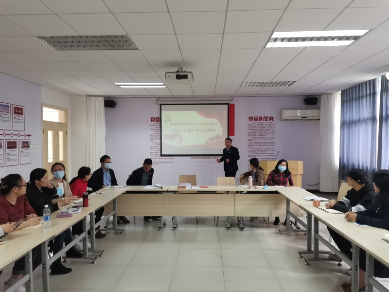本网讯(记者 张思楚)根据学校党委统一部署和要求,11月23日,管理学院在A8-203组织召开了党总支(扩大)会议暨理论学习中心组集体学习,认真学习贯彻党的十九届六中全会精神。管理学院党总支书记罗自力,管理学院副院长刘飞燕,党总支全体委员、各教工党支部和学生党支部书记和党务负责人参加了本次会议。会议由管理学院党总支副书记戴杰主持。