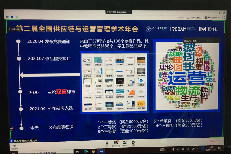本网讯(记者 侯凌霞)11月28日上午,第二届全国供应链与运营管理学术年会顺利落下帷幕。会上,由中国管理科学与工程学会供应链与运营管理分会(ISCOM)倡议发起2020年首届全国供应链与运营管理教学短视频竞赛活动也终于揭晓答案。我校管理学院供应链管理系梁慧玉老师荣获一等奖。