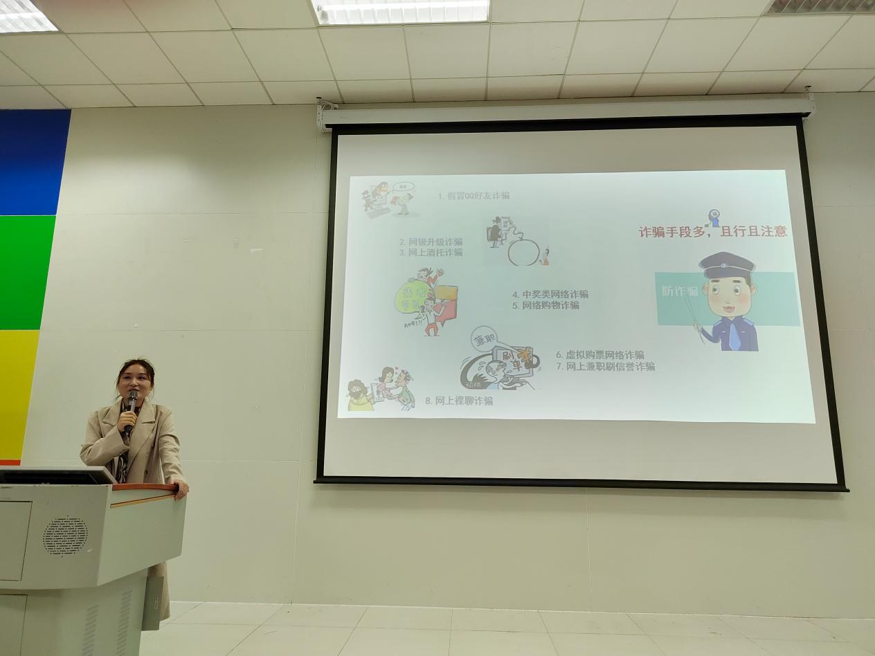 21级辅导员王斯斯老师从传染病预防、宿舍各类注意事项及预防诈骗三个部分进行校园安全宣讲。她强调了在预防传染病中配戴口罩的重要性,并提出“均衡饮食,加强锻炼,增强体质是预防传染病的根本”。谈及宿舍长职责时,王斯斯要各宿舍长牢记“四板块”——住宿安全、日常作息、水电安全、宿舍环境,并重点提及宿舍内的用电安全问题。在防诈骗宣讲中,王斯斯提出四个防诈骗关键词:“不怕”、“不贪”、“不点”、“不信”,同时告诫同学们要下载好“国家反诈app”,如有异常或诈骗被盗及时联系秀全派出所。