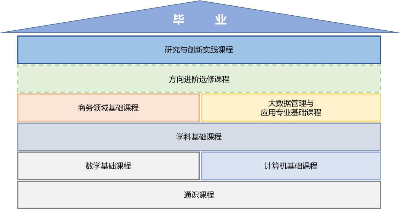 具体的专业核心课程主要有:管理学原理、经济学原理、大数据管理、管理信息系统、数据科学、云计算、大数据治理与安全、数据库原理与应用、数据仓库设计方法、ETL技术、商务数据分析工具、大数据营销、数据挖掘等。