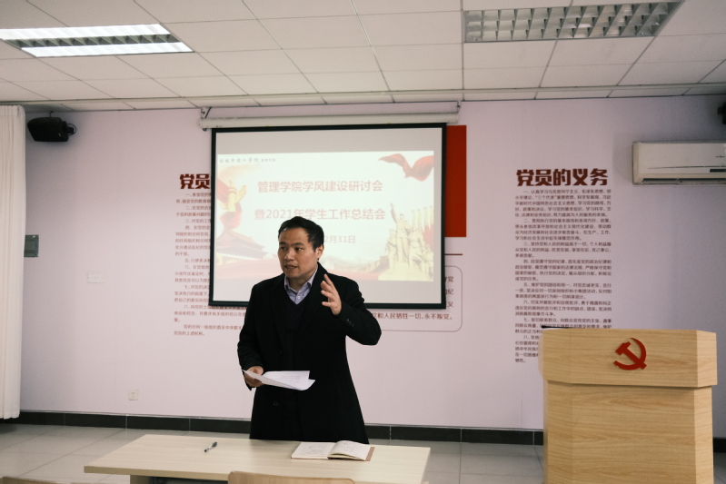 本网讯(记者 戴杰)12月31日上午,管理学院在A8-203组织召开学风建设研讨会暨2021年学生工作总结会,管理学院党总支书记罗自力主持会议,管理学院学生工作办公室辅导员参加本次研讨会。