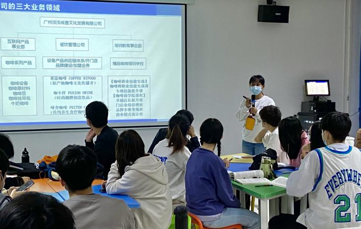 课上,康洁雅老师就咖啡行业的发展、咖啡豆的种植与生产、咖啡的种类等相关知识和同学们进行了分享,同时还介绍了莱漾咖啡、咖小样等自主品牌的定位和特色。康洁雅老师讲到,“与传统咖啡品牌相比,咖小样是一个年轻且具有活力的品牌。主要目标人群定位为18-28岁的年轻人,品牌理念为“咖小样的200种喝法”,年轻人可以结合个人喜好打造属于自己独特的咖啡口味。”