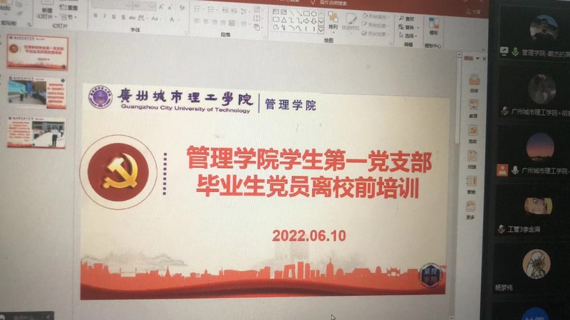 本网讯(记者 戴杰)唱好毕业歌,走好就业路。按照学校党委组织部和学院党总支部署安排,管理学院学生第一党支部2022年6月10日晚通过线上平台组织召开2022届毕业生党员离校前培训会。