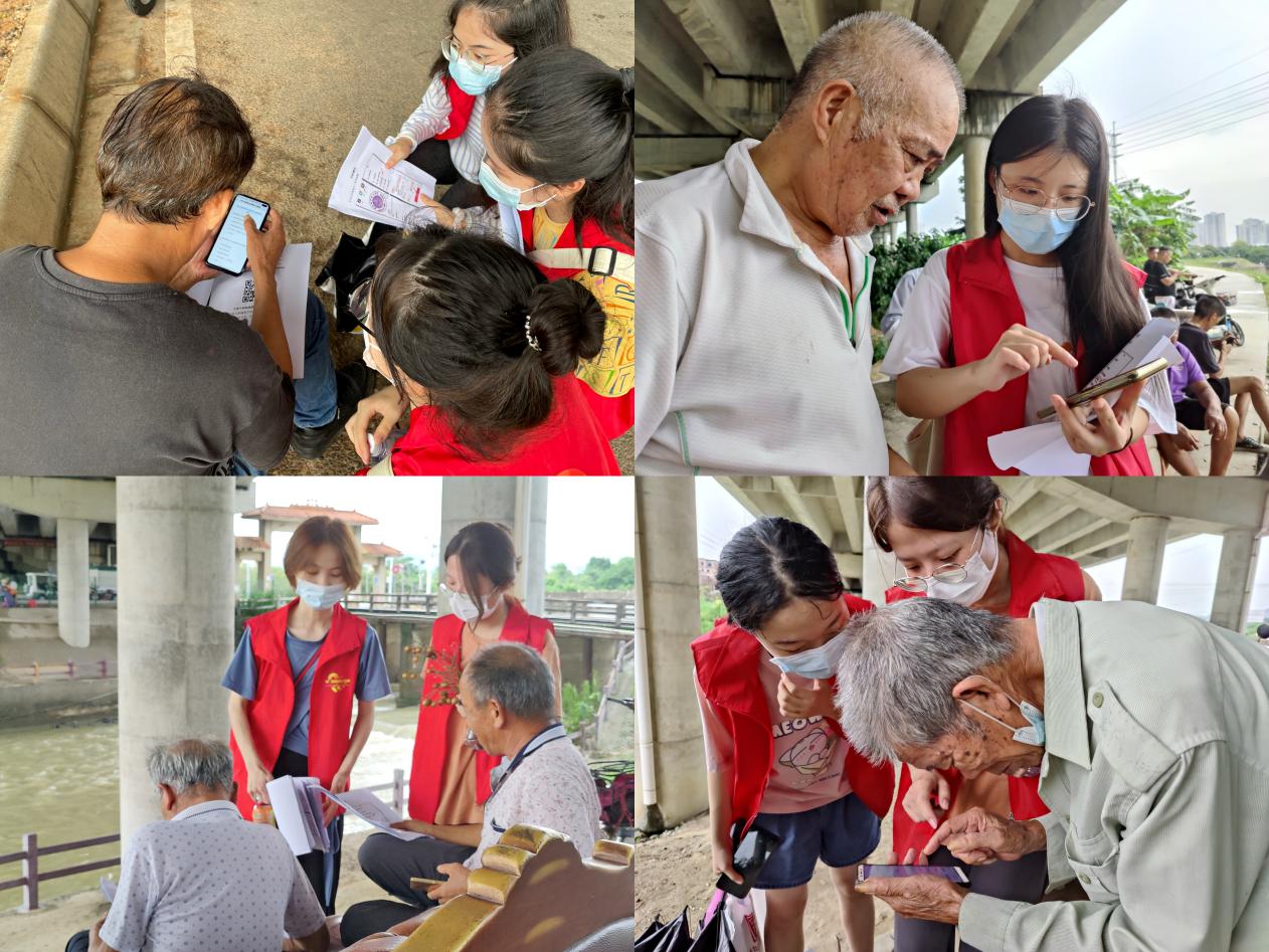 图为实践团成员采访中老年人 (黄晓婷 区楹烯 摄)