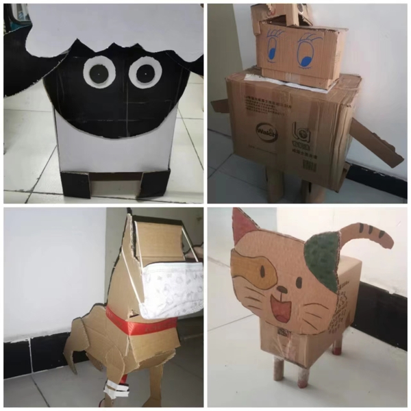 在此过程中,工作人员发现了同学们的“妙手巧思”。同学们将废弃纸箱变废为宝,改造再利用制作成纸箱宠物,放在宿舍门口展示宿舍文化。在疫情防控期间,同学们的活动空间被圈定了范围,更希望“找点乐子”丰富大学生活。养纸箱宠物是大学生们释放压力的一种方式,通过自主设计、手工制作等方式来丰富自己的课余生活;养纸箱宠物也是一种社交媒介,同学们在朋友圈分享纸箱宠物,约上小伙伴一起去操场,交流分享彼此制作的宠物和名字,能够获得社交上的积极反馈。当然,这种变废为宝的创新方式,不仅利于培养学生的创新思维和动手能力,而且提高了学生的环保意识,进而推动构建校园环保环境。