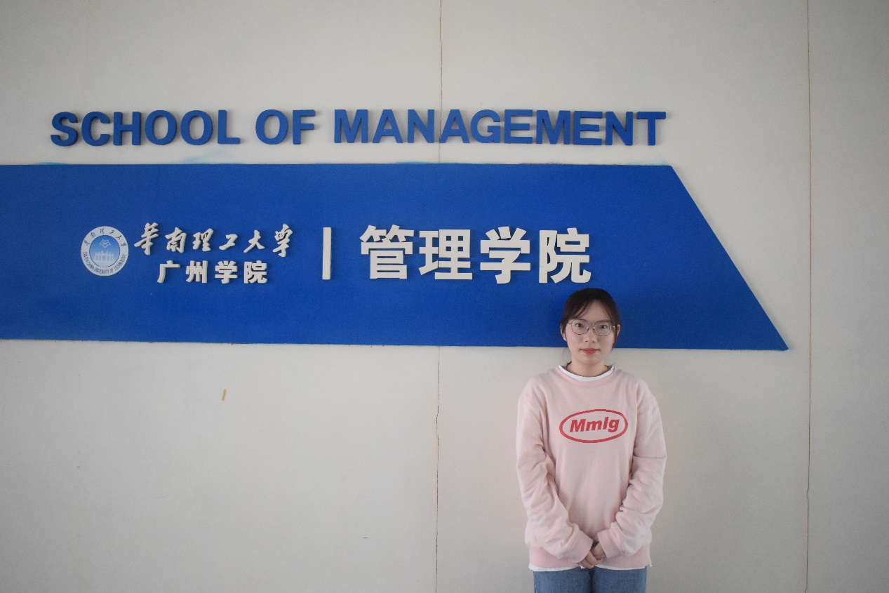 杨秋怡,中共预备党员,在班内担任团支部书记一职,工作及时率100%,曾获暑假社会实践“积极分子”称号、广东省展翅计划“优秀练习生”称号、挑战杯“红色专项”二等奖、“一星志愿者”称号与“最美志愿者”称号,并连续两年获得“三好学生”称号及三等奖奖学金。