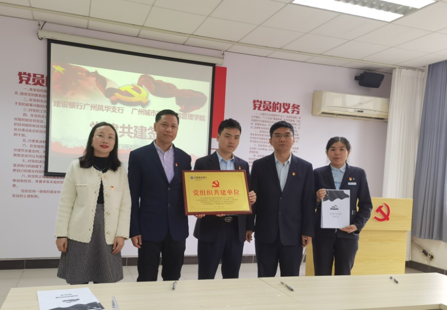 本网讯(记者 侯凌霞 戴杰)3月30日下午,管理学院与建设银行广州凤华支行在A8-203举行党建共建签约仪式暨学习交流会。建设银行花都分行机关党总支书记徐毅、凤华支行个人金融部副总经理卓智敏、管理学院党总支书记李大章、建行凤华支行党支部党员代表及管理学院教工第一党支部党员教师参加本次党建活动。会议由管理学院党总支副书记戴杰主持。