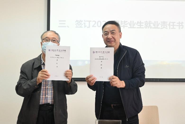 朱桂龙院长与各系负责人签订就业责任书(袁韵诗 摄)