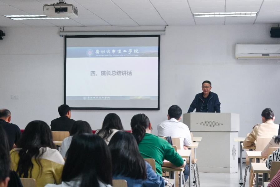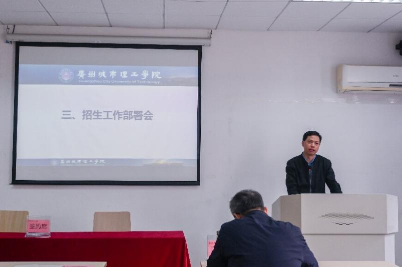 在部署学院2023年招生宣传工作环节,李大章传达了学校2023年招生工作的目标,介绍了学校招生工作的具体安排,明确了通过“线上+线下”进行招生宣传的工作思路。他指出招生宣传工作是做好招生工作的重要环节,他鼓励老师们通力合作,创新方式方法,共同做好学校2023年招生宣传工作。