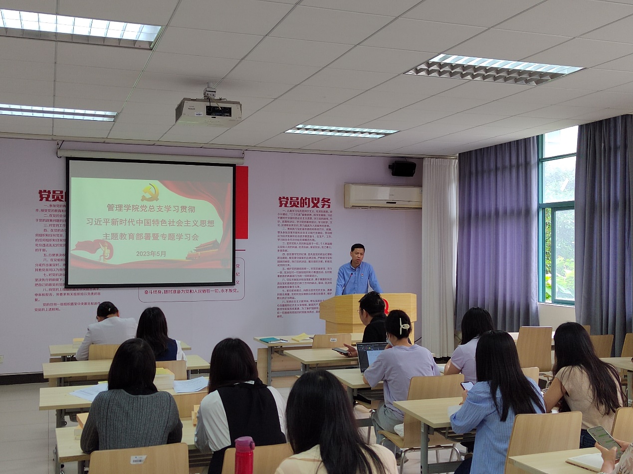 本网讯(记者 戴杰)5月11日下午,管理学院在A8-203会议室召开学习贯彻习近平新时代中国特色社会主义思想主题教育部署会暨专题学习会,管理学院党总支书记李大章主持会议并领学,学院党总支委员、各教工党支部和学生党支部负责人参加学习。