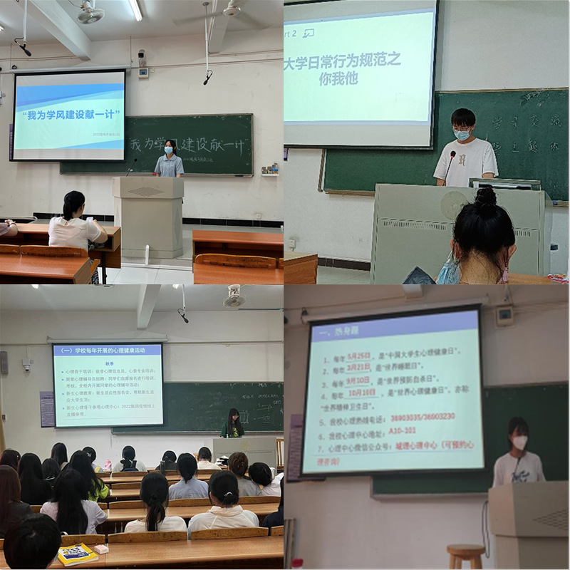 学院高度重视学风建设和大学生心理健康教育工作,周密制定主题班会工作实施方案,各班级以抓学风、普及心理健康知识为重点,围绕宿舍学习氛围、和谐人际关系、课堂学习纪律和个人自律等推进主题班会落实。此次主题班会不仅有助于各班营造良好的班风学风,而且有效地普及了心理健康知识,提升心理健康素质,促进身心健康和谐发展,为同学们成长成才打下坚实的基础。