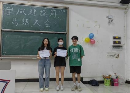 紧接着,戴老师为在此次学风建设月取得“优秀五星学风班”、“优秀四星学风班”、“优秀三星学风班”的班级进行颁奖;陈传禧老师为在“优秀学习交流会”中获得第一名、第二名、第三名的班级颁奖;王蕊老师为在此次学风建设月中获得"优秀读者"的同学颁奖。
