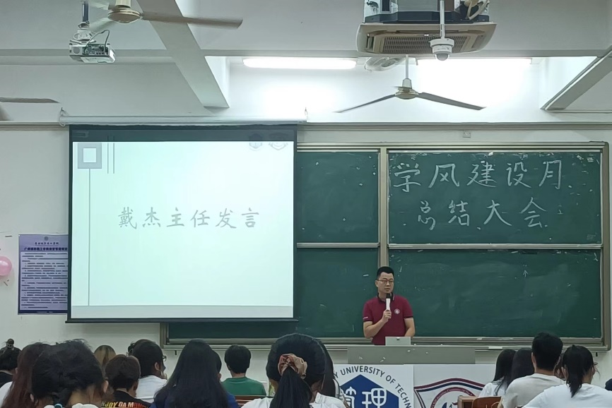 活动伊始,管理学院学工办主任戴杰老师为本次学风建设月表彰大会发表讲话。戴老师谈到,学风是读书之风,是治学之风,更是做人之风,学校作为一个培养人才的平台,不仅仅要重视学生的专业知识培养,还要注重道德素质的培养,而学风建设月活动的开展能够有效的督促学生注意自身的言行举止,营造一个良好的学习环境,优化学院风气。同时,戴老师也谈到,学律会是一个为广大同学学习服务的平台,一是在学律的工作性质上,宿舍检查和学风建设作为学律工作的重要板块,在开展工作是避免与同学们发生不愉快的冲突,希望能保持初心,妥善巧妙处理冲突。二是要积极与各班纪委们搭建好关系,携手纪委助力推进学风建设。三是打铁仍需自身硬,要不断优化改进工,加强自身建设,进而才能更好发作方式挥好学院学风建设推进者角色的作用。