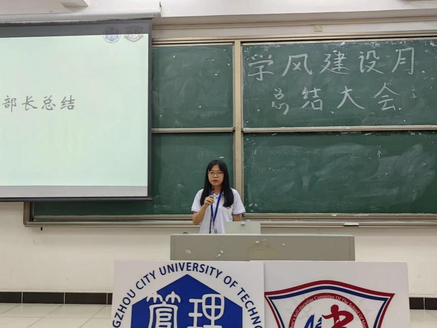 会议最后,纪检部部长刘慧意再次对今晚获得表彰的班级和个人表示热烈祝贺,同时也对背后一直默默工作的工作人员和各班的纪委们再次表示衷心的感谢。学风建设是一个长期而艰巨的工作,希望大家以后继续努力,以被评上的优秀班级为标杆,争取实现更多、更高、更优的学风建设。学风建设月结束之后希望大家能继续深入推进学风建设各项标准,明确方向、创新举措,将班级学风、学校学风推向新的高度。
