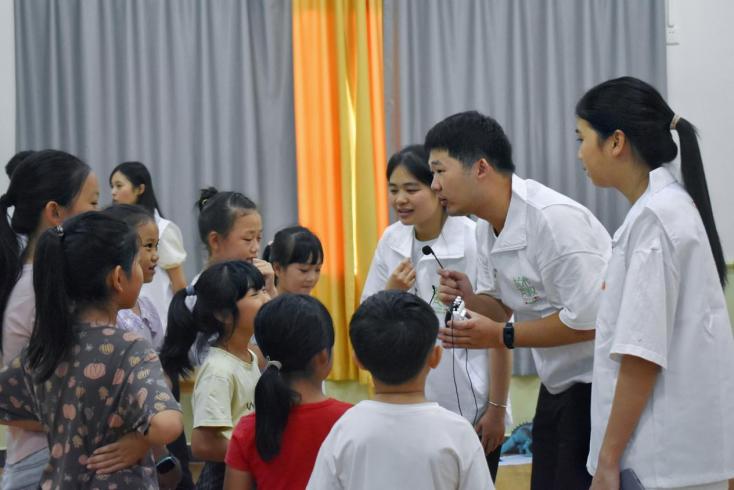 为给孩子们营造融洽的学习氛围,活动以多种破冰小游戏拉开帷幕。通过自我介绍、击鼓传花、小板凳等游戏,孩子们在欢笑声中逐渐熟悉,亲近的交流让孩子们在短时间内建立了友谊,为之后的义教奠定了良好基础。
