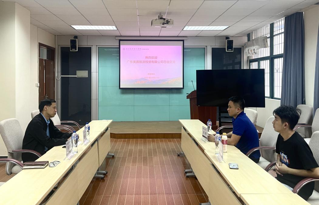 本网讯(记者 高煜)为推动产教融合,深化校企合作,实现校企资源整合与优势互补,10月11日下午,广州蝴蝶谷生态旅游区总经理杨阳一行来访管理学院。学院党总支书记李大章、就业辅导员高煜参加交流座谈。
